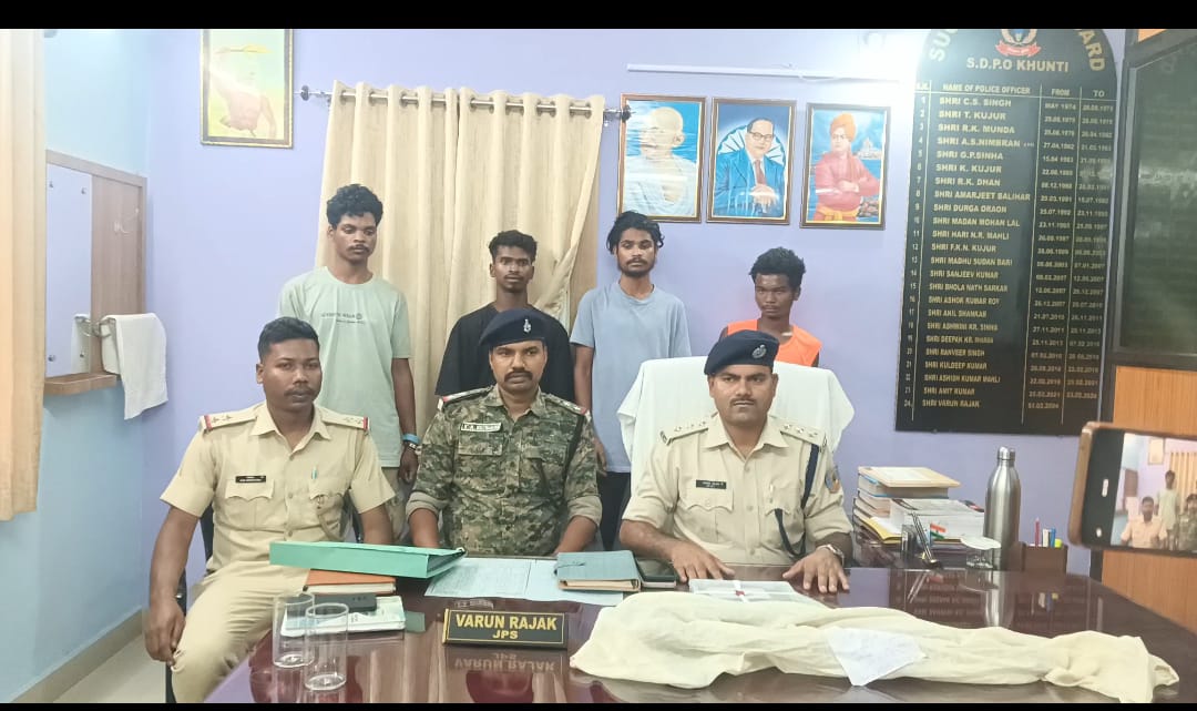 4. प्रवीण मुण्डू उर्फ टकलु (उम्र-22 वर्ष), पिता- स्व. शांतिमय मुण्डू, ग्राम- लौगा हीड्डी, थाना-अड़की, जिला-खूँटी